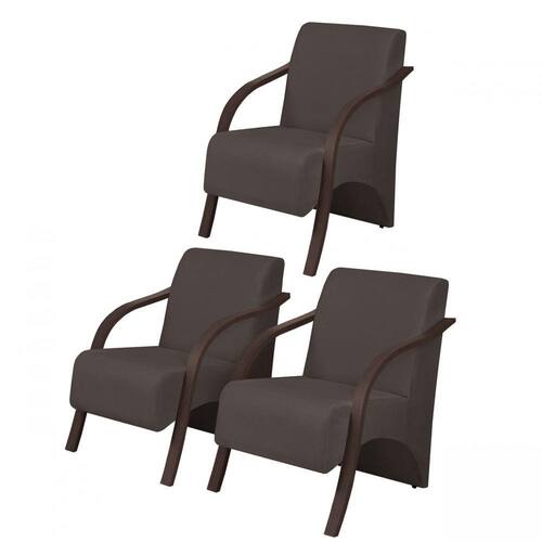 Kit3 Poltronas Decorativas Vênus 1 Lugar Braço Pé Madeira D Salla Suede - Marrom