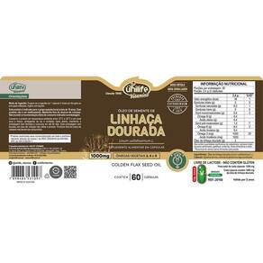 Kit 5 óleo de semente de linhaça dourada 1000mg unilife 60 cápsulas Óleo de linhaça dourada unilife 60 cápsulas Cada cápsula contém 1.000mg de óleo de linhaça dourada É a maior fonte de ômega 3 existente na natureza. Contém ômega 6 e ômega 9. São ácidos graxos poli-insaturados essenciais que mantém as células em condições de integridade. Contém também proteínas, minerais, vitaminas e lignina substância comparada ao hormônio feminino estrogênio . Benefícios do uso do óleo de linhaça dourada em cápsulas Fonte de ácidos graxos essenciais Previne os sintomas da menopausa Ajuda a regular o ciclo menstrual Previne o envelhecimento precoce Melhora o sistema imunológico e previne doenças cardiovasculares Sugestão de uso Sugere-se a ingestão de 1 cápsula, duas vezes ao dia, após as refeições. Ingerir com líquido. Ingredientes Óleo de linhaça dourada. Cápsula: gelatina bovina, umectante glicerina e água. Não contém glúten. Livre de lactose. Marca: Não Informado Ean: 7908609502723