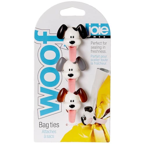 Joie Woof Laços de cozinha reutilizáveis multiuso, mantenha os sacos de comida fechados para frescor, organize cabos, anel de guardanapo de pano fofo, conjunto de 3, dispositivo de armazenamento com