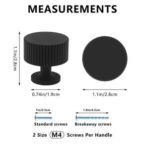 Puxadores de armário de cozinha puxadores de gaveta puxadores de cômoda - ?Material sólido?: Estes puxadores de armário são feitos de liga metálica, garantem longevidade e durabilidade. Elas banhadas com acabamento preto fosco, trazem a você uma nova experiência de reforma da casa. - ?Design exclusivo?: Os puxadores são design cilíndrico de listras verticais. Ideal para várias peças de móveis, como armários, gavetas, armários, guarda-roupas ou cômodas, etc. - ?Medição e instalação?: Diâmetro: 28 mm, Altura: 28 mm. Acompanhado por dois tamanhos de parafusos, pode ser utilizado para espessuras de gabinete que variam de 1,27 cm a 3,5 cm. - ?Conteúdo da embalagem?: Cada pacote inclui 12 puxadores de gabinete, 12 parafusos padrão de 2,5 cm e 12 parafusos separáveis de 4,6 cm. Cada alça é embalada individualmente e embalada para proteger a bela cor de arranhões. - ?Suporte ao cliente?: A Abtopia está comprometida em fornecer aos nossos clientes ferragens de armário de qualidade premium. Se você tiver alguma dúvida ou problema, . Estamos comprometidos com sua satisfação e abordaremos suas preocupações imediatamente.