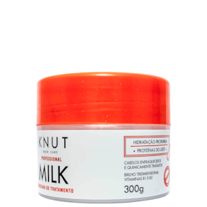 KNUT Mask Milk hidrata profundamente, o que deixa um efeito de "desmaia cabelo" nos fios, ou seja, que reduz o volume. Também melhora a resistência da fibra capilar para aumentar sua proteção natural contra as agressões externas e químicas futuras. Assim, você conquista um cabelo incrivelmente brilhante, fortalecido e com toque sedoso.