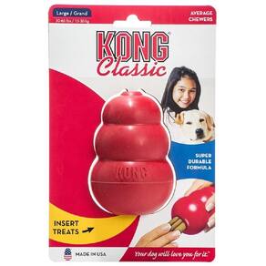 Kong Classic Large T1 Kong classic é indicado por veterinários, adestradores, treinadores e clientes satisfeitos pelo mundo. Brinquedo de borracha que os cães adoram, que é extremamente resistente. O kong classic é para combater o tédio, a ansiedade de separação, gastar a vontade do cachorro de morder e destruir objetos, etc.. Promovem entretenimento, enriquecimento ambiental, ajudam em problemas comportamentais e muito mais Feito de borracha atóxica e muito resistente, seu interior é oco para guardar biscoitos, petiscos ou material impregnado do odor que o cão deve identificar durante a sua busca. Seu formato irregular, faz com que o brinquedo kong classic pule de um lado para outro, de forma imprevisível, estimulando ainda mais o prazer que o seu cão tem em capturar a presa. por treinadores profissionais e policiais, para recompensar cães que farejam , que defendem e patrulham território,ou que ajudam a encontrar e prender criminosos. O kong classic exercita a mandíbula de nossos pequenos caçadores, ajudando a manter as gengivas saudáveis não machuca , sem ser abrasivo e agressivo com os dentes. Cuidado com as imitações baratas. Só o kong é a marca conhecida e Utilizado mundialmente por profissionais e recomendada por treinadores. Nenhum brinquedo de cachorro é 100% indestrutível, supervisione as primeiras sessões que o seu cão tiver contato com o kong. É importante escolher o tamanho adequado do kong para garantir o máximo de segurança e diversão ao seu cão. A segurança do seu cão é sua responsabilidade. Você pode utilizar um kong maior para seu cão, menor que o indicado nunca Tamanho large grande - indicado para cães adultos de 13 kg até 30 kg. Medidas aproximadas: altura: 10 cm - largura na base: 7 cm - largura no topo: 5 cm. Ex: bassê, beagle, border collie, boston terrier, bóxer, buldogue francês, bull terrier, cocker spaniel, cole, dachsund, doberman pinscher, golden retriever, husky siberiano, labrador retriever, pastor alemão, pastor australiano, pastor de steland, pointer alemão de pelo curto, poodle standard , pug, rhodesian ridgeback, shar-pei, spaniel bretão, springer spaniel inglês, terrier irlandês, vizla, weimaraner, welsh corgi pembroke, west terrier.