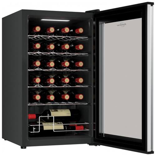 Armazene e exiba com elegância 24 garrafas de vinho com a Geladeira de Vinhos Koolatron, que possui prateleiras removíveis de aço inoxidável que acomodam garrafas maiores e formatos não convencionais. Com um suporte de exibição horizontal, é fácil identificar e acessar seus vinhos favoritos. Com opções flexíveis de armazenamento, prateleiras deslizantes e racks ajustáveis, você pode guardar uma variedade de vinhos com facilidade. O design compacto e elegante se encaixa perfeitamente em qualquer ambiente, proporcionando refrigeração eficaz e silenciosa para manter seus vinhos na temperatura ideal. Possui zona de resfriamento única, controles digitais de toque, porta de vidro UV protetora, compressor de alta performance, sistema de auto-descongelamento.