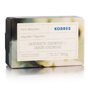 Sabonete em barra cremoso. Korres Algodão Puro possui uma espuma macia higieniza com suavidade e perfuma delicadamente