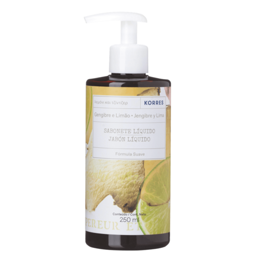 Sabonete líquido para mãos. À base de extratos naturais, Korres Gengibre e Limão higieniza, perfuma e hidrata a pele.
