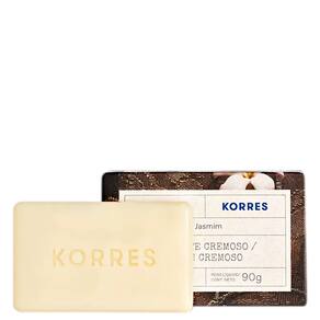 Sabonete em barra cremoso. Korres Jasmim higieniza a pele com sua espuma macia e perfuma com leveza.