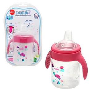 Indicada para crianças que estão aprendendo a comer sozinhas. Possui bico de silicone macio com toque suave. Conta com tampa e válvula que evita vazamentos. Formato anatômico, leve e fácil de segurar. Cor: Vermelha. Marca: KUKA PROD.INFANTIL ###