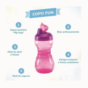 Indicado para crianças que estão aprendendo a comer sozinhas. Possui um bico de silicone e tampa com válvula que evita vazamentos. Conta com formato anatômico, leve e fácil de segurar. Cor: Rosa. Marca: KUKA PROD.INFANTIL ###