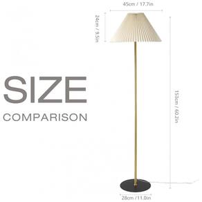 A luminária de chão KUNJOULAM combina design moderno e funcionalidade para transformar qualquer ambiente. Com 153 cm de altura, seu abajur plissado de tecido bege possui 45 cm de diâmetro e 24 cm de altura, proporcionando iluminação suave e elegante. A base metálica com acabamento dourado de 28 cm de diâmetro confere estabilidade e estilo, complementando a decoração da sua sala, quarto, escritório ou qualquer ambiente interno. Compatível com lâmpadas LED, CFL, halógenas ou incandescentes de até 60W (não inclusas), essa luminária é perfeita para criar um ambiente acolhedor e sofisticado. O ângulo do abajur é ajustável em 0°, 15° e 45°, permitindo direcionar a luz conforme sua necessidade. Com cabo elétrico e interruptor de botão, seu uso é prático e seguro. Esta peça charmosa e compacta é ideal para quem busca uma iluminação eficiente com um toque de estilo moderno e minimalista. Recomendamos o uso de lâmpadas com luz quente (3000K) para um ambiente ainda mais aconchegante, muito apreciado por jovens e adultos. Além disso, é uma excelente opção de presente. Seu cabo longo possibilita o uso em diversas cenas internas, como no quarto, escritório, sala de estar, quartos de hóspedes ou ao lado da cama como luminária de leitura.
