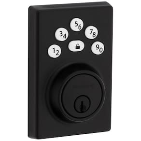 Fechadura eletrônica Powerbolt SmartCode contemporânea Kwikset 9240CNT-514 com trava RCAL e acabamento RCS Strike em preto fosco — entrada sem chave: torna o ir e vir seguro e conveniente.