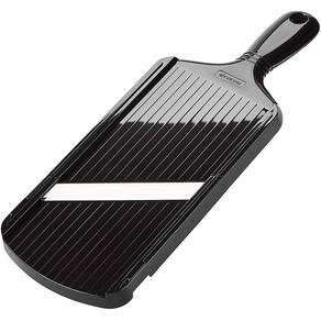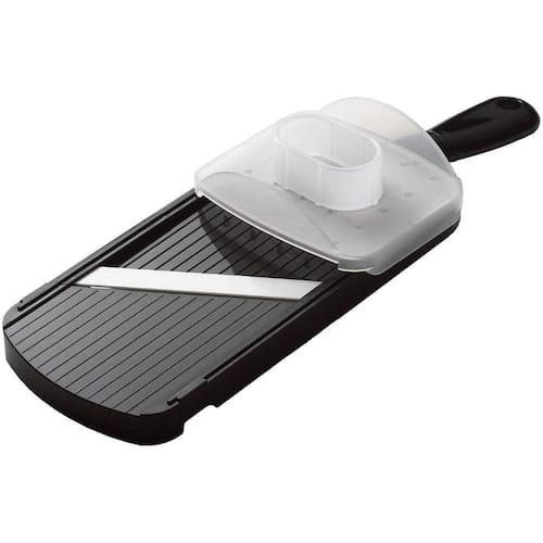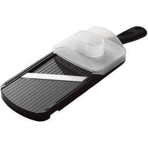 O bandolim versátil kyocera foi projetado com uma lâmina de dois gumes para que você possa produzir o dobro da fatia usando um movimento para frente e para trás. A lâmina cerâmica permanecerá mais nítida até 10x mais longa que as lâminas de aço. Totalmente imune a ácidos, sucos, óleos, sais, nunca alterará o sabor, o cheiro ou aparência da comida e não vai enferrujar ou corroer. Leve e fácil de usar com uma espessura de uma lâmina, nenhuma configuração é necessária. Você vai descobrir que este cortador pode criar perfeita, até mesmo fatias de frutas ou legumes para uma salada, fritura, au gratinado ou torta. O guarda-mão está incluído para manter os dedos fora de perigo.