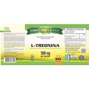 L-treonina unilife 500mg 60 cápsulas Modo de uso: Sugere-se a ingestão de 2 cápsulas ao dia após a refeição. Ingerir com líquido. Ingredientes: L-treonina, agente de massa celulose e antiumectantes dióxido de silício e estearato de magnésio. Cápsula: gelatina vegetal e água purificada. Peso total de cada cápsula: 500mg. Não contém glúten. Livre de lactose. Produto vegano. Produto autorizado para comercialização em todo o território nacional através do anexo i da rdc 240/2018 da anvisa. Afe do ms 6.02234-1. Marca: Não Informado