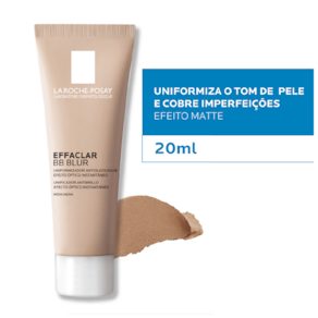 BB Cream La Roche-Posay Effaclar BB Blur também ajuda a controlar a oleosidade ao longo do dia e promove uma transformação instantânea da superfície e cor da pele. Além disso, proporciona acabamento matte e não obstrui os poros.