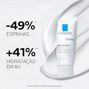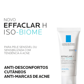Creme hidratante facial para peles oleosas e fragilizada por tratamentos antiacne. La Roche-Posay Effaclar H ISO-BIOME proporciona hidratação profunda, alívio imediato e ação restauradora da barreira cutânea.