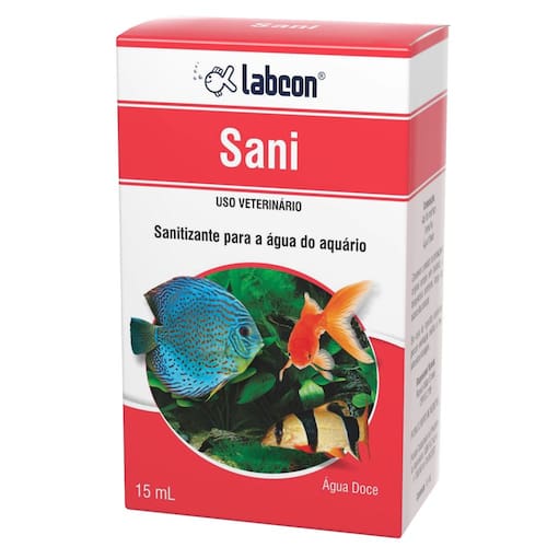 Auxilia a eliminar o mau odor da água Labcon Sani é um sanitizante que promove o equilíbrio biológico de aquários de água doce ao combater os micro organismos responsáveis pela desestabilização do ambiente, causadores de mau cheiro na água. A água fica turva e com mau cheiro em decorrência do excesso de matéria orgânica, ou seja, sobras de ração e acúmulo de fezes. Para solucionar este contra tempo, sugerimos que verifique a quantidade de ração fornecida (ofereça sempre uma quantidade de ração que seja consumida completamente em até 5 minutos), aplique Labcon Cristal e Labcon Sani, em seguida realize uma sifonagem do fundo. O floculador, Labcon Cristal, deve ser aplicado a cada 48h até o completo clareamento da água. A presença de um filtro mecânico eficiente, além do filtro biológico (placas no fundo) é fundamental para manutenção da água limpa. Águas turvas normalmente apresentam elevados teores de amônia e nitrito, compostos extremamente tóxicos aos peixes.É importante que estes parâmetros sejam monitorados semanalmente, junto com o pH, através dos testes: Labcon Test Amônia Tóxica Água Doce, Labcon Test Nitrito e Labcon Test pH Tropical.
