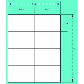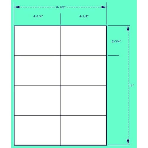 Etiquetas, tamanho 4,25" x 2,75". Feito de estoque White Matte Labels (75 g/m2). Mede 4 1/4" x 2 3/4" cada e vem com 8 etiquetas por folha de 8 1/2" x 11". Compatível com impressoras a jato de tinta e laser.