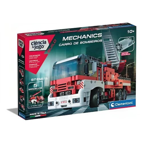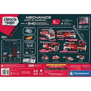 Um grande caminhão de bombeiros motorizado e mais 5 modelos para construir, experimentar e aprender os conceitos mais importantes da mecânica e da engenharia. Um desafio sempre diferente para te divertires a pensar e a imaginar possíveis soluções e montagens, um grande laboratório de construção para estimular a criatividade e a imaginação, bem como a destreza manual, com tudo o que é preciso para deixar a criança livre para testar as suas ideias e verificar as soluções de uma forma concreta.