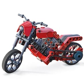 Com mais de 130 peças, esse kit permite a construção de dois modelos: uma moto roadster ou um dragster.
