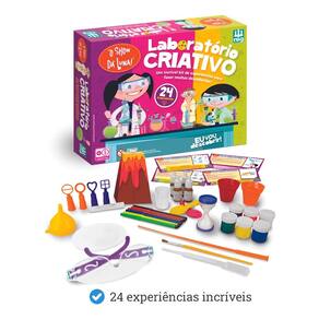 Com esse kit de 24 experiências, as crianças vão fazer muitas descobertas!!Cada experimento é detalhado em fichas, com ilustrações coloridas do passo a passo. Ao final, a criança se conecta com o episódio do Show da Luna, relacionando a atividade aos conceitos sobre densidade, fotossíntese e outras reações químicas.O kit acompanha tubos de ensaio, pipeta, corantes coloridos, óculos de proteção, funil, ampulheta e muito mais.Você vai se divertir com esse super lançamento da Nig Brinquedos!Laboratório Criativo do Show da Luna! Um super laboratório para você fazer diversos experimentos, são 24 experiências para você se divertir!O kit de laboratório é composto por óculos de proteção, tubos de ensaio, fichas com QR Codes com vídeos e muito mais!Adquira já o seu laboratório e divirta-se junto com a Luna e sua turma!MEDIDAS APROXIMADAS DA CAIXA-Altura: 29cm-Comprimento: 42cm-Largura: 06cmCARACTERÍSTICAS DO PRODUTO:-Produto educativo-Lançamento 2023-Produto Interativo-Axulia o deenvolvimento infantilCONTEUDO DA EMBALAGEM:-1 estante de E.V.A-2 tubos de ensaio-1 pipeta-4 corantes-1 copinho de plástico-2 bexigas-1 óculos de proteção-1 funil-1 cartão de atividades-24 fichas-6 guaches-1 pincel-1 ampulheta-1 vareta-1 kit bolhas-3 folhas de papel filtro redondo-2 vasinhos-canetinhas coloridasESPECIFICAÇÕES:-Fabricante/Fornecedor: Nig BrinquedosO produto e as cores podem variar do apresentado nas fotos da embalagem. Imagens meramente ilustrativas.