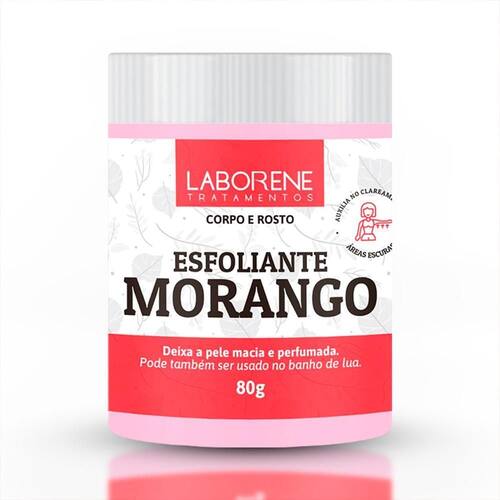 Laborene - 02 Esfoliante Morango 250gDesenvolvido pensando no seu bem-estar corporal. Além de auxiliar no clareamento de áreas, promove a limpeza das células mortas, deixando um cheiro sempre agradável em seu corpo.- Pele macia e perfumada;- Auxilia no clareamento da pele;- Promove a limpeza das células mortas.Sugestão de uso:1 - Aplique o produto entre duas a três vezes por semana no corpo. Massageie bem;2 - Para esfoliação do rosto, aplique uma pequena quantidade, e massageie suavemente com movimentos circulares com a ponta dos dedos;3 - Enxágue em seguida.O que você está comprando02 - Esfoliante Morango Laborene - 250g.ANVISA 25351.717683/2018-16.Não testado em animais;Imagens meramente ilustrativas. Marca: Não Informado