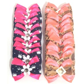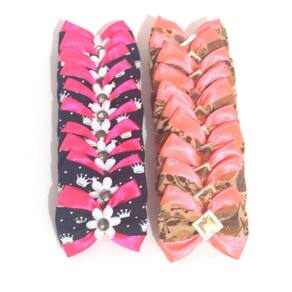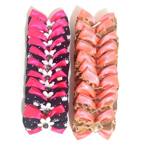 Este laço deixará seu pet ainda mais com estilo e elegância. Confeccionado em tecido estampado e com apliques diversos. Laço pequeno. Dimensões: Comprimento: 4cm Largura: 3cm Cores: 10 unidades na cor rosa e azul marinho; 10 unidades da cor laranja com marrom. Apresenta liga resistente de silicone na parte detrás para ser amarrado ao pelo. Kit acompanha 20 lacinhos conforme fotos. Marca: Nica pet Ean: 7438473441854
