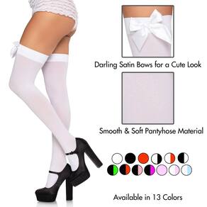 Meias 7/8 Leg Avenue femininas, opacas, com laços de cetim