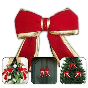 Decoração De Natal Laço de Veludo Vermelho Com Borda de Ouro 18 Cm