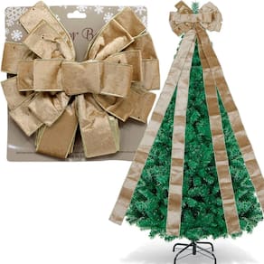1 Laço Decorativo Bege Para Ponta Árvore De Natal De 140cm;