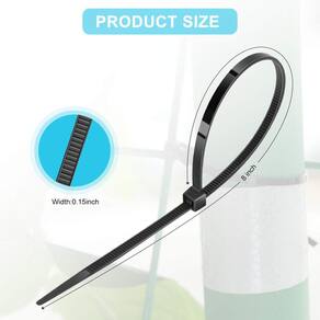 DETALHES: pacote com 200 braçadeiras de plástico resistente, utilizáveis em muitas aplicações, 8 “de comprimento e 0,15" de largura, pretas.