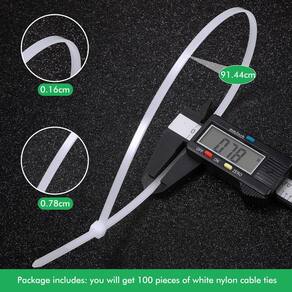 Características: Estas abraçadeiras de travamento automático são feitas de material de nylon e design de travamento automático, fáceis de usar em muitas situações. O envoltório de arame branco é adequado para encadernação de cercas, amarrar toldos e agrupar galhos de plantações, trazendo a você uma boa experiência de uso. Especificações: Material: nylon Cor: branco Tamanho: aprox. 91,4 x 0,8 cm. O pacote inclui: 100 abraçadeiras com zíper. Observações: Medição manual, considere pequenas diferenças no tamanho. A cor pode existir uma pequena diferença devido a diferentes monitores. - Quantidade e tamanho: o pacote vem com 100 peças de abraçadeiras brancas, cada uma mede aproximadamente 91 x 0,8 cm, quantidade suficiente para vários usos, você também pode compartilhar com seus amigos e familiares - Âmbito de uso: os laços de arame podem ser aplicados em ambientes internos e externos, como casa, escritório, garagem, jardim, viagens, oficina, máquinas e outros lugares, proporcionando mais conveniência para sua vida diária - Fácil de usar: basta passar a ponta pelo orifício e puxá-la para o ponto desejado, então a curva entrelaçada interna completa a fixação, essas abraçadeiras de nylon adotam design de travamento automático, simples e fácil de usar - Design flexível: você pode usar 2 ou mais abraçadeiras brancas para estender o comprimento do agrupamento ou reforçar maior resistência à tração, você pode optar por usar de acordo com suas próprias necessidades, que tem uma ampla variedade de aplicações - Forte e resistente: estas abraçadeiras resistentes são feitas de nylon de qualidade, a borda lisa pode ajudar a prender mais rapidamente e a ponta curva pode ser facilmente inserida na cabeça, o que pode atendê-lo por um longo tempo