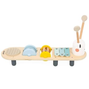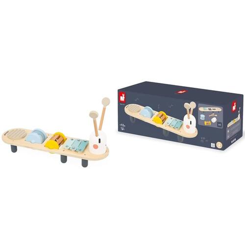Transforme a brincadeira em um verdadeiro espetáculo musical com a encantadora Mesa Lagarta Musical. Esta mesa de atividades sonoras estimula a audição, a coordenação motora fina e a criatividade de forma lúdica, segura e envolvente. Com um design colorido, bordas arredondadas e acabamento impecável, a mesa traz diversos instrumentos para despertar o interesse musical dos pequenos. A cabeça da lagarta é removível e serve como chocalho.