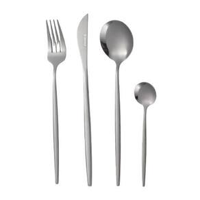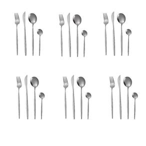 Laguiole Conjunto de Talheres de Dourado 24 peças - Eclat de Inox Composto por: 6 facas 21,34 cm / incluindo lâmina de 10 cm 6 garfos 20,25 cm 6 colheres 20cm 6 colheres de sobremesa 13,68 cm Material: aço inoxidável acabamento PVD Cor: prata Não pode ser lavado na máquina de lavar louça, pois os talheres de PVD exigem uma manutenção mais delicada. Marca: Não Informado