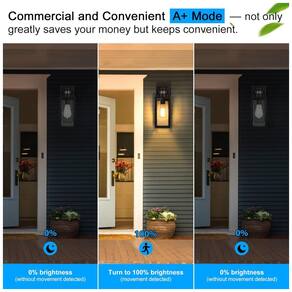 Modo de substituição manual exclusivo Se você quiser que essas arandelas de parede externas com sensor do crepúsculo ao amanhecer ofereçam forte brilho à noite por várias horas para ocasiões como festa, reunião de família ou outras ao ar livre, desligue o interruptor de parede com 0,52 seg. para mudar para o modo manual de um automático, mantendo 100 de brilho por 8h, mas desligará automaticamente ao amanhecer. Luzes semelhantes compradas de outros não têm sensor de movimento ou modo de substituição manual, bastante amargo para a demanda de alto brilho de longa data.