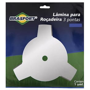 Descrição do produto: Lâmina 3 Pontas 1 Pol. Para Roçadeira - BRASFORT Lâmina de corte desenvolvido em material resistente proporcionando flexibilidade e durabilidade, ideal para roçadeiras. Ideal para uso em casas, sítios, chácaras, pequenas fazendas, prefeituras, empreiteiras, reflorestadoras. - 3 Pontas - Furo: 1 25,4mm