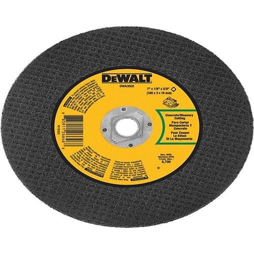 Lâmina abrasiva de alvenaria DeWalt DWA3502, 7 polegadas x 1/8 polegadas - Formulação mais macia para corte mais rápido - Grão de óxido de alumínio - Corte de cimento