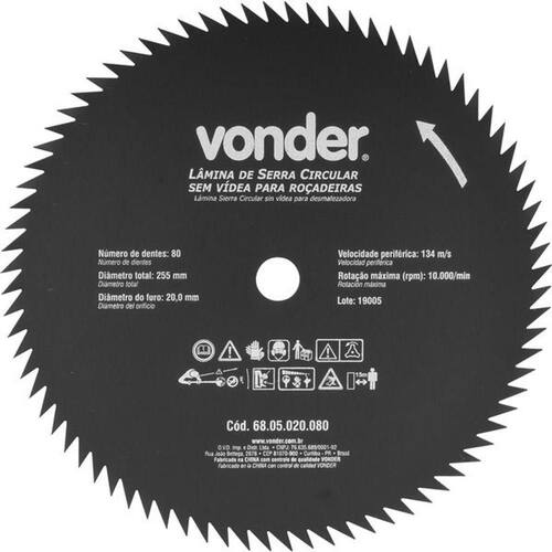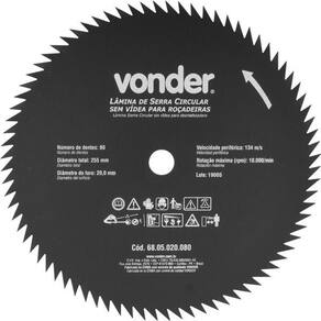 Lâmina Circular para Roçadeira sem Vídea 255x20,0x80 Vonder