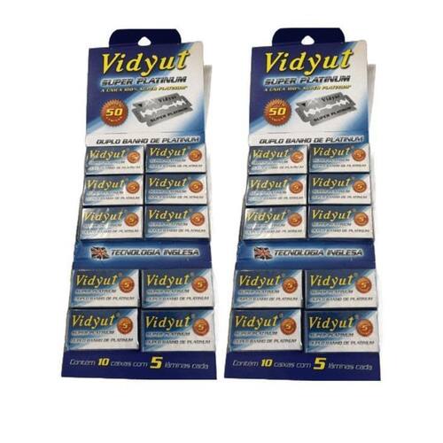 - Atenção: mantenha fora do alcance das crianças. - para barbear. - para fazer pezinho após corte de cabelo. Lâminas vidyut - 50 unidades Contém 50 unidades Composição: aço inoxidável Como usar: deve ser junto ao navalhete e com creme para barbear. Não expor a temperaturas acima de 48c. Produto não perecível Marca: vidyut Produzidas em aço inoxidável de alta qualidade - contém: 10 caixas com 05 lâminas em cada caixa. - total de lâminas = 50 unidades Marca: Não Informado