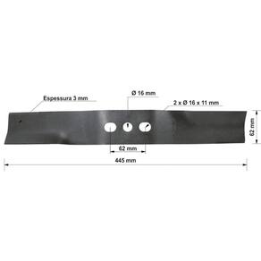 A Lâmina de Reposição 450 mm Tramontina para Cortador de Grama CE45M é a escolha perfeita para a manutenção do seu cortador de grama! Produzida em aço carbono com corpo temperado, ela é altamente resistente e durável. Com ela, você garante um cortador de grama eficiente e a manutenção do seu jardim com mais qualidade e praticidade. Orientações - A lâmina é temperada em todo o corpo da peça, proporcionando maior resistência e menor desgaste durante o uso.- Fabricada em aço carbono especial de alta qualidade.- Recebe pintura eletrostática a pó, que tem uma melhor apresentação visual e maior proteção contra oxidação.- Lâmina com 450 mm de comprimento.- Utilizada nos cortadores de grama CE45M. Observações - Produto destinado para a reposição e manutenção das peças dos cortadores de grama Tramontina.- Para descarte dos produtos e embalagens siga as orientações de reciclagem vigentes. Características Gerais EAN13 7891117061540 DUN14 17891117061547 NCM 8208.40.00 Peso Líquido 0,5880 kg. Peso Bruto 0,6080 kg. Metragem 0,003420 m³. Dimensões Embalagem (Compr. X Larg. X Alt.) 565x 62x 4 mm. Dimensões Produto (Compr. X Larg. X Alt.) 445x 62x 19 mm. Espessura 3,0 mm. Cor 1 000000 Hexa