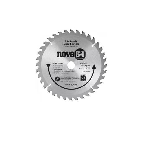 Lâmina De Serra Circular 185X20X36D - Nove54 46.68.185.036 Lâmina De Serra Circular Marca: Nove54 Cod: 46.68.185.036 185 mm 36 Dentes Máx. 7200 rpm 70 m/s Furo: 20 mm