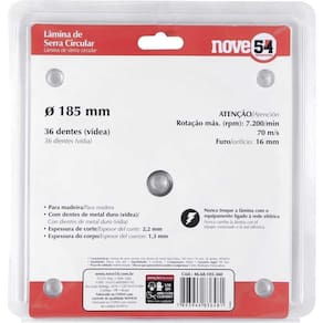 Conteúdo da embalagem: 1 Lâmina de serra circular vídea 185mm 36 dentes Nove54