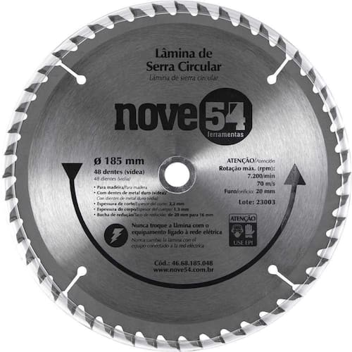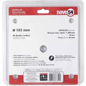 Conteúdo da embalagem: 1 Lâmina de serra circular vídea 185mm 48 dentes Nove54