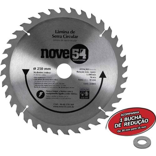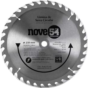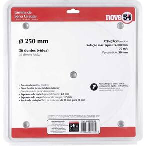 Conteúdo da embalagem: 1 Lâmina de serra circular vídea 250mm 36 dentes Nove54