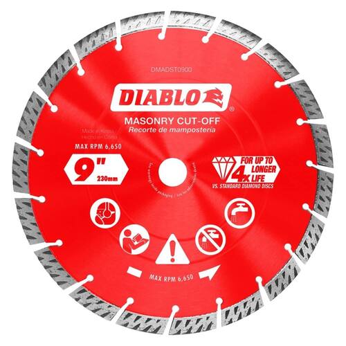 Diablo Lâmina de corte de alvenaria turbo segmentada de diamante para concreto, tijolo e bloco - 23 cm de diâmetro, corte de 2,6 mm, 6.650 RPM máximo - DMADST0900
