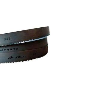 Dentes rígidos e resistentes ao desgaste, feitos de aço Rápido M42 obtido devido ao endurecimento equilibrado com dureza de 67-69 HRC, resultando em alta resistência ao desgaste. A alta qualidade da Fita Bimetal ARNTZ combina a flexibilidade do corpo de aço especial com a enorme resistência ao desgaste do Aço rápido