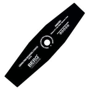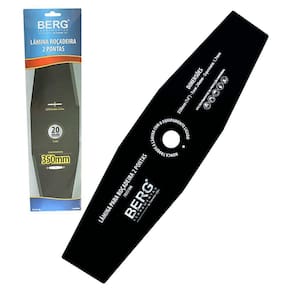ESPECIFICAÇÕES: Material: Aço Manganês Dimensões: Comprimento: 35cm x Larg. da extremidade: 6cm x Espessura: 1,7mm Peso: Aprox.: 335g CONTÉM:01 LÂMINA PARA ROÇADEIRA COM 2 PONTAS Marca: Berg Ferramentas