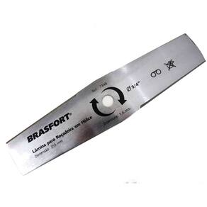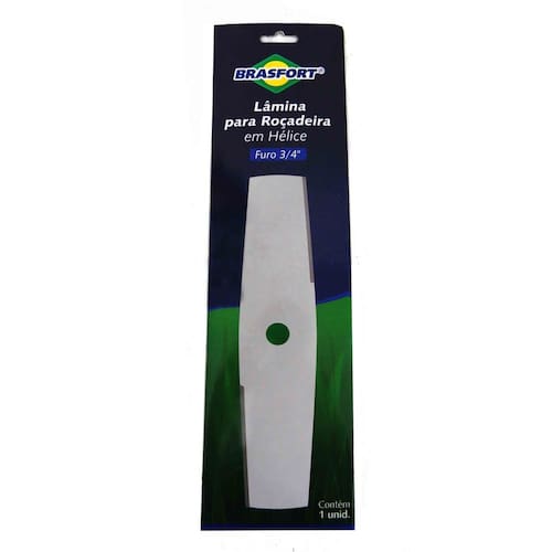 Lâmina para roçadeira em hélice, projetada exclusivamente para uso em roçadeira. Para corte de capim rasteiro e fino, em áreas planas. Ideal para uso em casas, sítios, chácaras, pequenas fazendas, prefeituras, empreiteiras, reflorestadoras. Marca: BRASFORT Características: -Dimensão: 355mm. -Furo: 3,4'. -Espessura: 1,6mm. -Peso: 290h. -Material: Aço carbono Conteúdo: -1 lâmina roçadeira tipo hélice. Aplicação: Ideal para uso em casas, sítios, chácaras, pequenas fazendas, prefeituras, empreiteiras, reflorestadoras. Código: 7348 Ean: 7898464737784