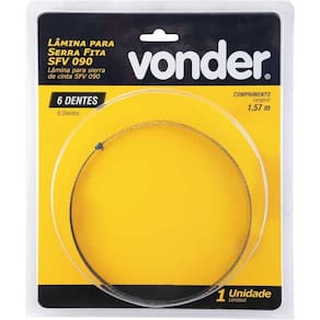 Aplicações e dicas de uso: Indicada para cortes retos de madeiras e derivados. Ideal para marcenarias, carpintarias, pequenas empresas de móveis, entre outras aplicações. Para reposição na Serra Fita SFV 090, VONDER (60.01.090.127 e 60.01.090.220).