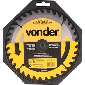 Conteúdo da embalagem1 Lâmina de serra circularAplicações e dicas de usoIndicada para cortar madeiras e derivados. Nunca exceder a rotação máxima rpm - risco de acidente e/ou queima da lâmina. Não cortar madeiras impregnadas com massa ou cimento.Destaques e diferenciaisCorpo em aço carbono com dentes de metal duro/vídea que proporcionam maior vida útil DETALHES TÉCNICOS Diâmetro da lâmina de serra circular: 10 - 250 mm Número de dentes da lâmina de serra circular: 36 dentes Espessura de corte da lâmina de serra circular: 3,2 mm Espessura do corpo da lâmina de serra circular: 2,2 mm Diâmetro do furo da lâmina de serra circular: 30 mm Rotação máxima da serra circular: 5.300 rpm Velocidade periférica: 70 m/s