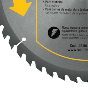 Acompanha 1 bucha de redução. Não utilizar em madeiras impregnadas com massa ou cimento. Para cortes em MDF, recomenda-se utilizar lâminas específicas.