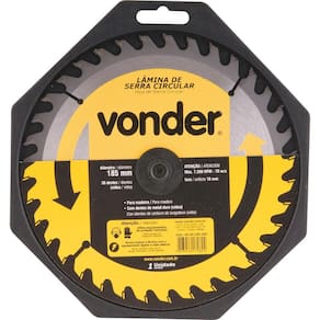 Conteúdo da embalagem 1 Lâmina de serra circular Aplicações e dicas de uso Indicada para cortar madeiras e derivados. Nunca exceder a rotação máxima (rpm) - risco de acidente e/ou queima da lâmina. Não cortar madeiras impregnadas com massa ou cimento. Destaques e diferenciais Corpo em aço carbono com dentes de metal duro/vídea que proporcionam maior vida útil